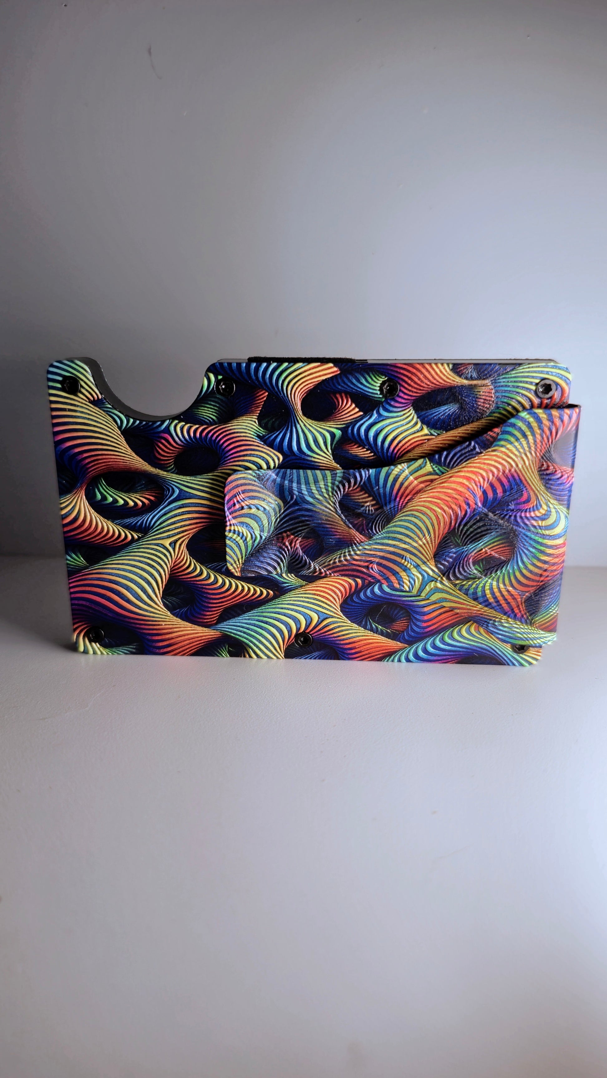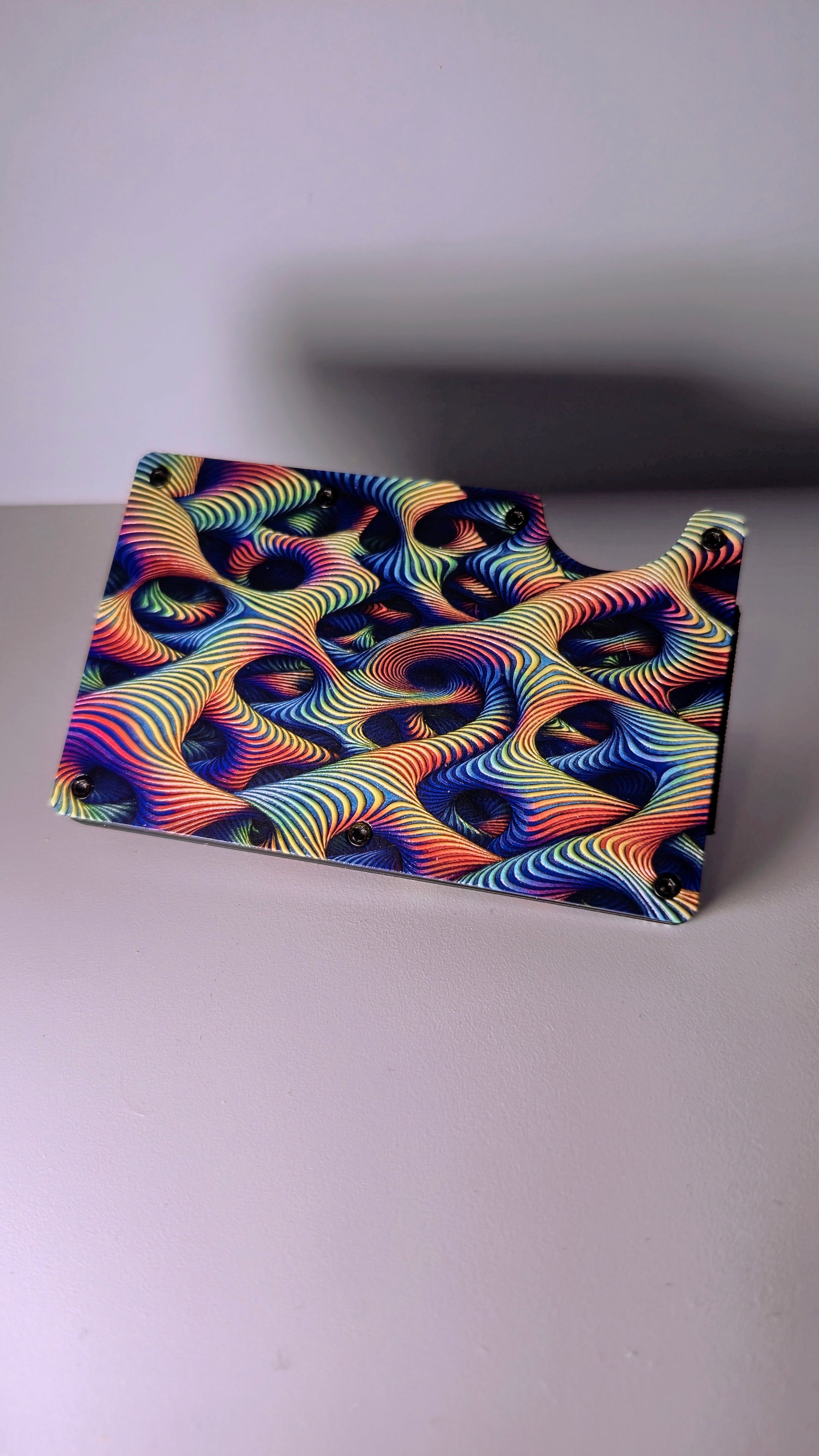Turn your everyday carry into a statement piece. This UV printed metal wallet features an eye-catching optical illusion design that looks like it’s moving right in your hand. Printed directly onto metal with high-resolution UV technology, the colours are bold, vibrant, and impossible to ignore.